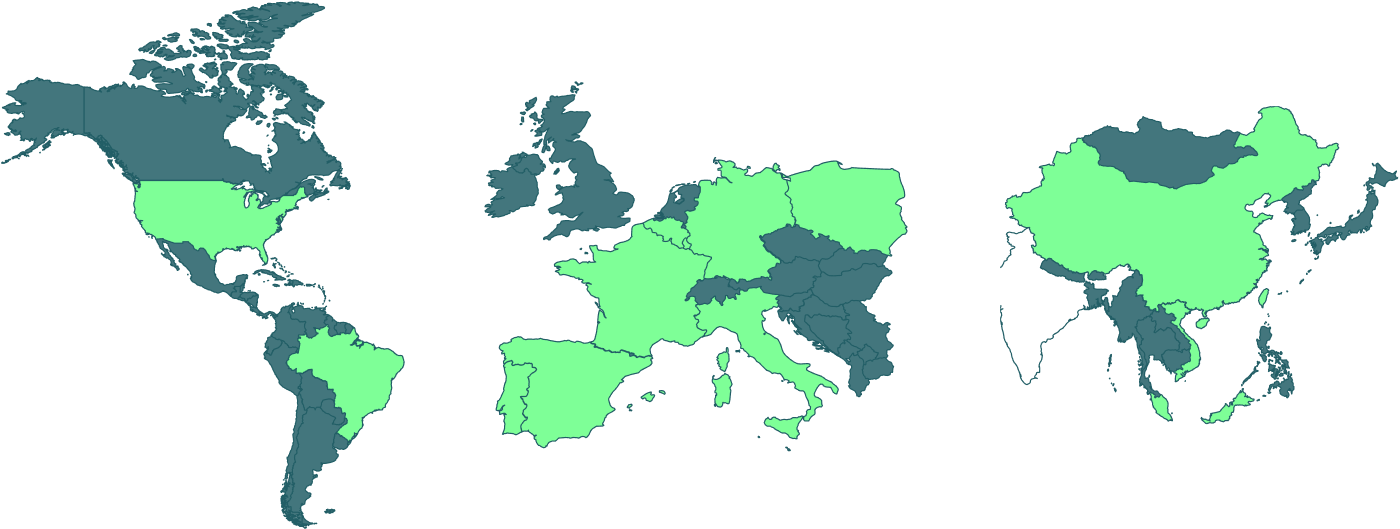 United States of America - Brazil - Portugal - Spain - Italy - Poland - France - Germany - Belgium - Luxembourg - China - Taiwan - Singapore - Vietnam - Malasya